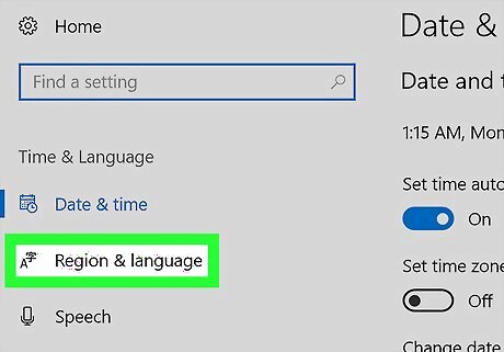 Click Region & Language on the menu panel. This option is located on the left-hand side. It will open your “Date & time” settings.