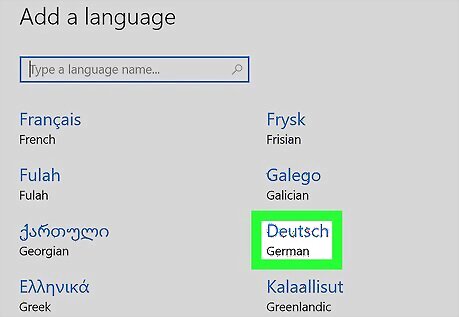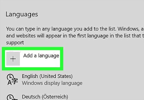 Click Add a language under Languages. This option is listed next to a "+" icon under the Languages heading. A list of available languages will pop up.