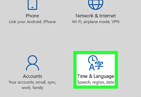 Find and click Time and Language on the Settings menu. This will open a new window with a menu panel on the left-hand side.