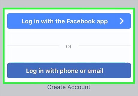 Select how you will sign in to Facebook. If you have the Facebook app on your iPhone or iPad, tap Log in with the Facebook app. If not, tap Log in with phone or email to access a sign-in screen in your browser.