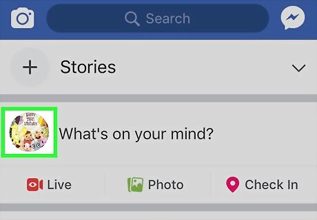 Tap your profile photo. It’s next to the “What’s on your mind?” box at the top of Facebook.