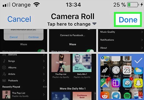 Tap the photo you want to use. This photo will be used as both your Facebook and Spotify profile photos.