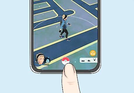 Tap the Pokéball icon at the bottom. It's a red-and-white Pokéball at the bottom of the map. It will open your menu options.