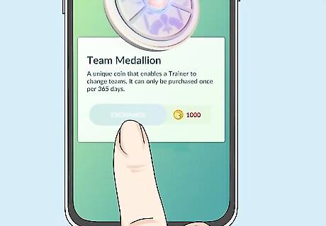 Tap EXCHANGE under the Team Medallion. This will exchange 1000 coins from your current balance for a Team Medallion. You can use this item to change your team. If you don't have enough coins to buy this, you can purchase coins from the in-app shop page.