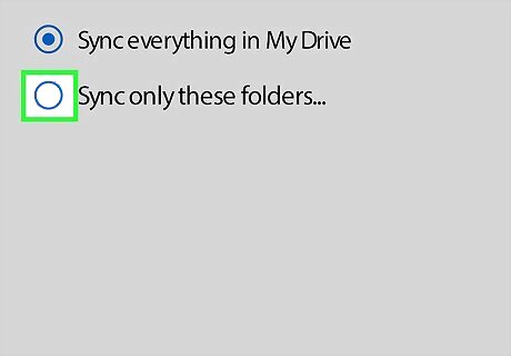 Check the "Sync only these folders" box. You'll find this box near the top of the window. Doing so will prompt a list of your Google Drive folders to appear.