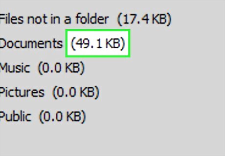 Review the list of folders. You can actually see the size of each folder to the right of the folders' names in this window.
