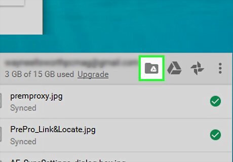 Click the Google Drive folder icon. This folder-shaped icon is in the upper-right side of the Backup and Sync pop-up window. You'll see a tiny Google Drive icon inside of the folder. Clicking it will open the Backup and Sync folder on your computer, where you'll be able to browse any folders downloaded from Google Drive. Do not click the Google Drive icon, as doing so will open Google Drive instead.