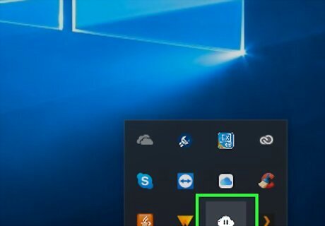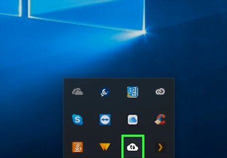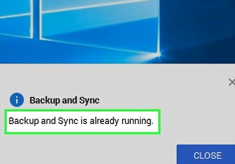 Click the Backup and Sync icon. It's a cloud-shaped icon with an upward-facing arrow. You'll find it in the taskbar, which is in the bottom-right corner of your computer's screen. A pop-up window will appear. If Backup and Sync is running but you don't see it in the taskbar, click Android 7 Expand Less in the lower-right side of the screen, then click the Backup and Sync icon in the resulting pop-up menu.