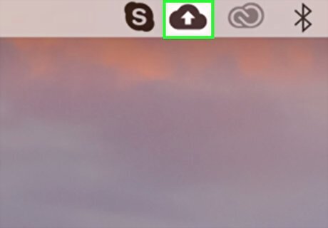 Click the Backup and Sync icon. It's a cloud-shaped icon with an upward-facing arrow in the upper-right corner of the screen. Clicking it prompts a drop-down menu.
