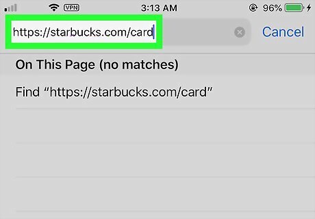 Typehttps://starbucks.com/card into the address bar and tap Go. The Starbucks gift card site will load.