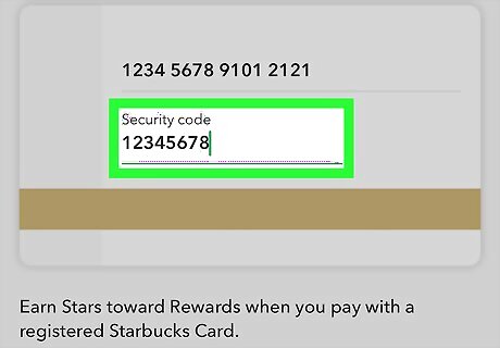 Enter the security code. This is the number on the back of the card. If you don’t see a number, scratch off the silver foil sticker to reveal it.