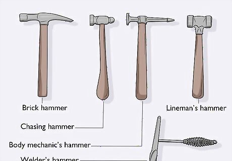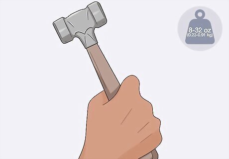Pick a ball-peen hammer for metal surfaces and tight spaces. A ball-peen hammer has a smaller head with a curved end that is useful for striking hard surfaces such as metal. The smaller size of the head also makes it a useful hammer to drive nails or rivets in narrow or hard-to-reach spaces. Ball-peen hammers are also useful for tampering metal around a curve or the edge of a surface. The rounded shape of the head of the ball-peen hammer prevents the force of a hard surface from cracking the head of the hammer.