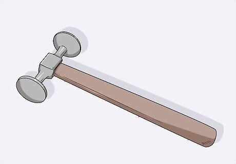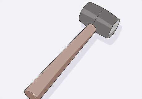 Choose a mallet for carpentry and furniture repairs. A rubber or wooden mallet is a good option for lightweight items and materials that you don’t want to damage by striking too hard. Wooden mallets are useful to use with wood chisels and carpentry. A rubber mallet is useful for tampering items such as furniture without damaging the surface. Rubber mallets are lightweight and safe enough to be used for general tasks such as driving tent stakes into the ground or leveling a stepping stone in the ground. Use a wooden mallet to tap the back of a wood chisel to ingrain designs into wood.