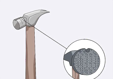 Go with a waffle-faced hammer for heavy-duty construction projects. Checkered or waffle-faced hammers will prevent the hammer from slipping off the head of the nail when you strike it, but they can leave an imprint on the surface of the wood if you miss and strike it. For remodeling or construction projects, use a waffle-faced hammer so you can drive more nails into the materials more quickly. If leaving imprints isn’t a concern, go with a waffle-faced hammer. Use waffle-faced framing hammers for construction projects.