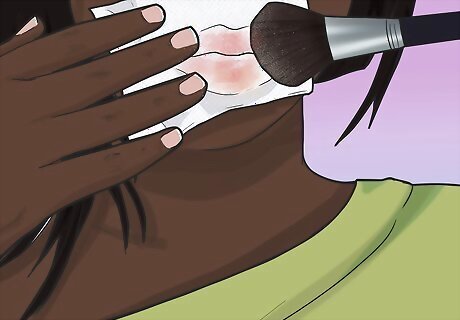 Lay a tissue over you lips and apply translucent powder to them. Translucent powder helps to set your lip color and make it last longer. Use a 1-ply tissue to cover your lips and dab them with a fluffy makeup brush to apply the powder. Applying powder directly to your lips can make them look cakey, so it’s important to use a tissue as a boundary.