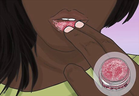 Exfoliate your lips before putting on lip color. Dry or flaky skin gets emphasized when you apply lip color no matter what. Use a lip scrub or your toothbrush to gently rub the dead and dry skin off of your lips before you put on your lip color.Tip: Make your own lip scrub by combining 1 tablespoon (15 mL) of honey, 1 teaspoon (4.9 mL) of olive oil, and 1 tablespoon (15 mL) of brown sugar.