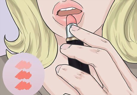 Apply your lip color in even, broad strokes. To make sure your lip color looks even, make sure you apply the same amount over all of your lips. Add some to the corners of your mouth and blot your lips together to spread out any excess product. If you are using a cream lipstick, use a small makeup brush for an easier application.