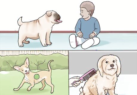 Research small dog breeds. Once you have considered the personality that you want your small dog to have, start researching small dog breeds to find one that is compatible with what you want. There are many small dog breeds and they all have different personalities, temperaments, and traits because of their breeding history. Any small dog breed with “terrier” attached to the name has been breed to hunt or work, so they can be feisty and do best as an only pet. This is why your research is so valuable, because certain types of terrier are not so good with small children. Terriers as a whole have a strong instinct to chase cats and may not be the best choice if you have other pets. Talk to a veterinarian about to get a recommendation on a small dog breed that would be compatible with your lifestyle.
