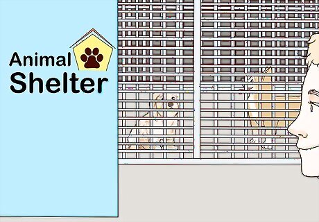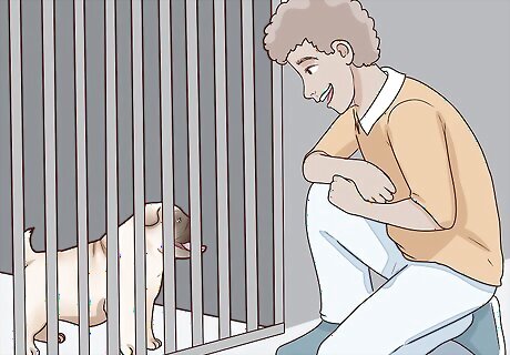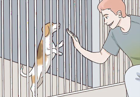 Pay attention to body language. As you walk through the shelter, pay attention to how the dogs that you are interested in react to you. Do they seem playful, shy, aggressive, or fearful? Watch for positive body language such as wagging tails, pressing against the cage to sniff you, and relaxed open mouths. If a dog seems aggressive (barking, growling, etc.), you should probably steer clear of that dog.