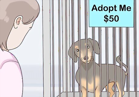 Consider adoption before looking into breeders. Many people surrender their dogs to local animal shelters simply because they cannot afford to keep them, not because they are bad dogs. Before you look into purchasing a dog from a breeder, check your local animal shelter to see what types of small dogs they have available. If you choose to adopt, you can take pride in the fact that you are providing a loving home to a deserving little dog and helping your local animal shelter in the process. Adoption is cheaper than buying from a breeder, since some breeders may charge upwards of a $1000 for one of their dogs. Adoption costs are kept low to encourage people to adopt. The cost of adopting a dog is usually between $50-$200. Another advantage of adopting from a shelter is that the dog will already be up to date on his or her shots, spayed or neutered, and possibly even house trained. You can even learn about the dog’s personality from the shelter employees or the people who are currently fostering the dog. Adopting a dog from your local shelter may even save its life, since shelters are so overcrowded and many shelter have to euthanize perfectly good animals to conserve space.