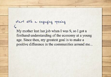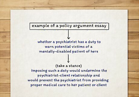 Explore something you care about. The 250-word essay allows you to write about something that you were not able to in your personal statement. Look at it as an opportunity to explore something important or meaningful to you that you weren't able to address in your personal statement. One potential topic is to write about a policy argument. A policy argument is an argument that advocates adopting a legal rule because of the benefit that it will bestow upon society or rejecting a legal rule because of the harm that it will cause to society. Writing about a particular policy argument that you care about is a great way to showcase your lawyerly writing skills. An example of a policy argument essay would be to take one side in the two sides of the debate as to whether a psychiatrist has a duty to warn potential victims of a mentally-disabled patient of hers. Policy arguments can come into play from both sides in this case. Potential victims of such patients can argue that public safety requires that the law impose such a duty on the psychiatrist, while the psychiatrist could make the policy argument that imposing such a duty would undermine the psychiatrist-client relationship and would prevent the psychiatrist from providing proper medical care to her patient or client. If you choose this topic for your 250-word essay, choose one side of this or a similar policy debate and persuasively make your case as to why you support the particular side of the debate that you do. You can also write about something more personal, like a hobby or passion or anecdote. The field from which you can choose your topic for The 250 is wide, and there is no reason not to write about personal anecdotes or hobbies, so long as your essay still demonstrates your ability to write persuasively and reason logically.