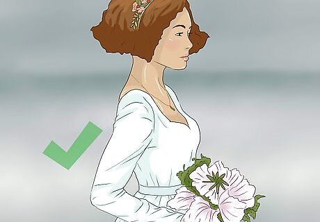 Look for dresses made from heavier fabrics. Airy, lightweight dresses are gorgeous, but a winter wedding calls for a more substantial dress. Luckily, many beautiful fabrics fall into this category. Not only will heavier dresses keep you warm while you’re outdoors, they’ll look much more seasonally appropriate than the thinner gowns. Satin and velvet are both beautiful, heavier fabrics for winter gowns. If you love a fabric like tulle, lace, or chiffon, it can always be layered a heavier fabric.