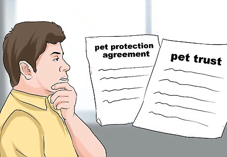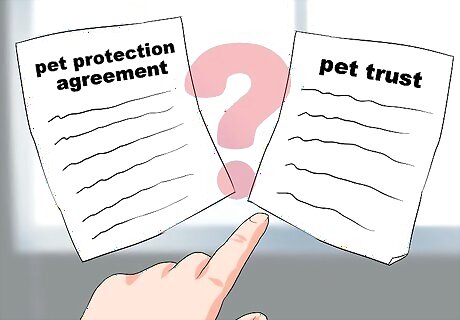 Understand the purposes of these documents. Both a pet trust and a pet protection agreement are legally-enforceable instruments that provide for your pets in case you die or become disabled. In these documents, you name one or more people to take care of your pets and provide detailed instructions for their care.
