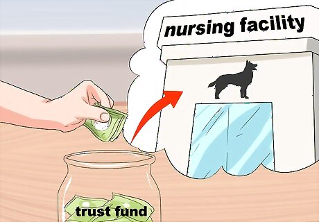 Leave a portion of funds to your nursing home facility. To encourage a nursing home to let the pet move with you to a facility, you can include in your trust directions that a portion of the trust property will be given to any facility that allows you and your pets to stay together. You should also think about who to leave the assets to when the beneficiary (your pet) dies. Many people choose to leave money to an animal shelter or welfare organization.