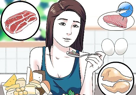 Whip up a high-protein chia seed pudding. Similar to overnight oats, this chia pudding is a great no-cook and make ahead breakfast meal. Plus, the chia seeds provide a nice source of protein and fiber. In a small bowl or mason jar, mix together the following ingredients: 1 cup of milk, 1/4 cup of chia seeds, 1 teaspoon of vanilla extract and 1 tablespoon of honey. Transfer your chia seed pudding to the refrigerator for at least 8 hours, however overnight is best. When you're ready to eat, take out your chia seed pudding and give it a thorough stir. Sometimes a few of the seeds stick together. Top your pudding with 1/2 cup of your favorite sliced fruit, an extra drizzle of honey and a dash of cinnamon if desired. Enjoy cold.