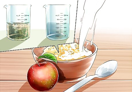 Make a batch of overnight oats. Overnight oatmeal is the perfect no-cook breakfast meal. Prepare this meal the night or weekend before so you have a high-fiber meal ready to go the next morning. In a tupperware container, bowl, or mason jar, add the following ingredients: 1/2 cup of rolled oats, 1/4 cup of milk, 1 teaspoon of vanilla extract, 1/2 cup of your favorite sliced fruit and 1 teaspoon of chia seeds. Mix together, cover, and place in the refrigerator for at least 4 – 6 hours, but preferably overnight. Serve cold the next day. You can add a drizzle of honey or add a dash of cinnamon if you'd like.