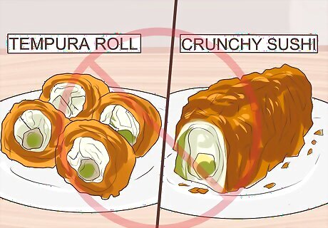 Skip tempura rolls and crunchy sushi. Tempura rolls are often served as an appetizer. These are vegetables coated in breading and deep fried. Some sushi rolls may also be crunchy and contain tempura. In general, skip tempura when eating at a sushi restaurant if you want to eat healthy.