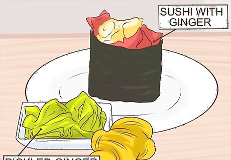 Garnish your food with ginger. Pickled ginger can be placed on your sushi before you eat it. Ginger is a good source of potassium and magnesium and may help boost the immune system. Try garnishing your sushi with ginger or eating the ginger raw.