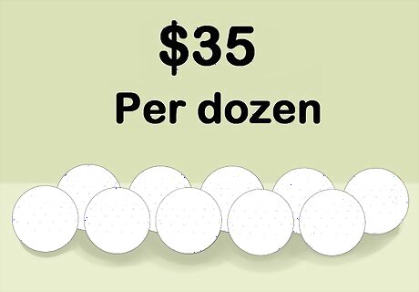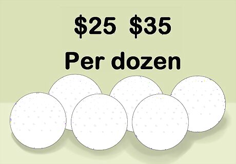Choose cheap balls if you’re new. If you’re new to the game of golf, you’ll likely be losing a lot of them. Buying expensive or even mid-range balls that you might lose is a good way to waste your money. Instead, look for balls that are around $10 to $20 per dozen. Try to avoid purchasing recycled balls, which usually come from driving ranges. They’re cheap, but they’re usually of poor quality and they can actually impede your game.