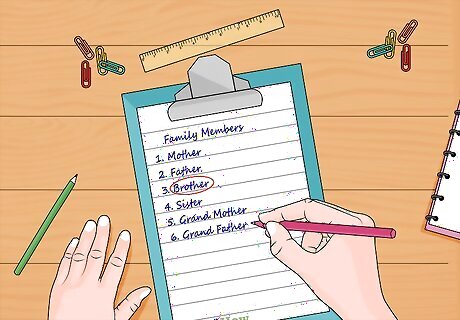 Identify the most important family member in your life. It may help to start by thinking about who is the most important family member in your life and then consider asking that person to walk you down the aisle. Perhaps you consider your brother your most important person in your life. Or maybe the first person that pops into your head is your single mother who raised you on her own. You may write down a few people who are important to you in your family on a piece of paper and then choose one from the list. Or you may discuss the most important family members in your life with your partner or another family member and come up with the right person together. Keep in mind you can be walked down the aisle by more than one person. For example, you may realize that your mother and your father are both important to you, and decide to ask them both to walk you down the aisle. This is your wedding after all, so you can make it your own.