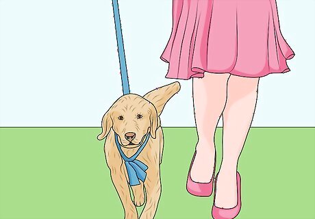 Enlist the family pet. One fun option is to include your family pet by having them accompany you down the aisle at your wedding. You may enlist a pet you and your family own or a pet you and your partner own together. Having a pet accompany you can be a unique and interesting addition to your wedding. If you do end up enlisting a pet to walk you down the aisle, you should make sure you practice the walk with them several times so they are prepared on the day of the wedding.