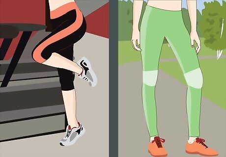Look for compression styles for intense activities. Compression fabrics are tightly woven to help increase the circulation in your legs. If you're engaging in an intense workout such as running or kickboxing, they can help reduce your soreness following your workout. Compression leggings tend to be more expensive, so unless you're engaging in high-intensity activities they may not be necessary. However, they have an added benefit of making your legs look taut, your muscles more defined. So if money is no object, you may prefer them for this reason alone.