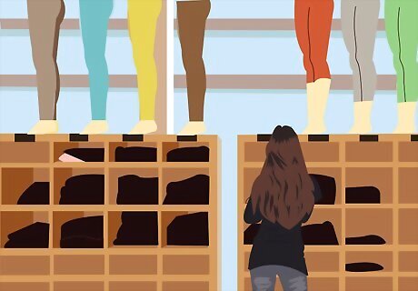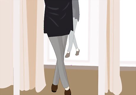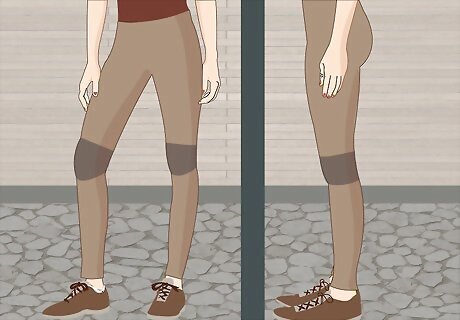 Assess the fit from all angles. Most fitting rooms come equipped with multiple mirrors that allow you to view the garment from all sides. Check carefully to make sure you're comfortable with how the leggings fit in different positions. It's natural for your leggings to move a little as you move; however, if you do a deep bend and your leggings slide down to expose half of your rear, you probably need to go up a size or two. On the other hand, if the fabric pools at your joints when you move in them, they may be too large.