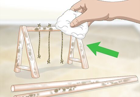 Dry the cage and accessories. Use a clean towel or cloth to dry the cage well. Wipe off any water on the cage. Dry off the cage accessories with a towel or cloth. You can also try putting the cage accessories made of wood in the oven. Leave them in the oven at 250° Fahrenheit (121° Celsius) for 10 to 15 minutes.