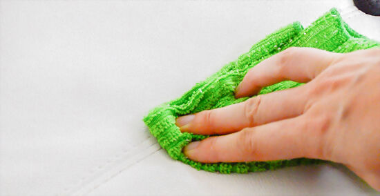 Wipe the leather again with distilled water to remove any soap residue. Take a clean microfiber towel and dampen it with plain water. Run it all over the leather to “rinse” the piece. Never completely saturate leather or submerge it in water. If you notice any spots or stains, treat them individually with a stronger cleaning solution like a leather cleanser or rubbing alcohol, depending on the type of leather.