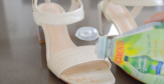 Mix 1 part mild soap with 1 part distilled water in a bowl or spray bottle. Use a soap without detergent so it won’t damage the leather. Combine it with distilled water, which won’t contain any potentially harmful particles that tap water could have. A mild moisturizing soap with aloe vera or essential oils will help restore some moisture to the leather and prevent future cracking. You can also buy special leather cleaner or saddle soap from a shoe repair store, leather care store, or online retailer. While these are more expensive, they often have protectants in them, too, to help keep your leather fresh. Cleaning Different Types of Leather Calfskin or full grain leathers: Use a leather cleaning soap to wipe away marks. Nappa: This very delicate material, made from goat, should be treated with a leather balm. Suede and nubuck: Opt for a suede shampoo, along with a stiff-bristled brush to remove dirt. Crocodile, lizard, or snakeskin: Look for a cream specifically designed for reptile or exotic leather that won't damage the expensive material. Patent leather: Rub off scuff marks with patent leather cleaner or petroleum jelly.