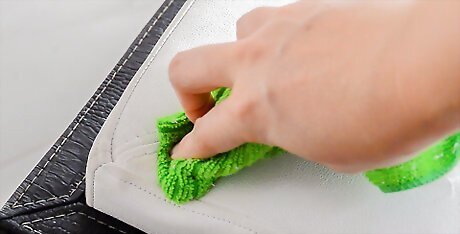 Buff the leather with a microfiber towel to dry it. Rub the towel in small circles around the leather to remove any leftover conditioner. This also pushes the moisturizer deeper into the leather so it lasts longer. If you want extra shine, polish your leather with a clean cloth and leather polish after conditioning it.
