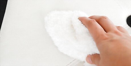 Apply the conditioner to the leather with a clean cloth. A little goes a long way when it comes to leather moisturizer. Spread it evenly across your piece using a microfiber cloth, which is more absorbent so it will help soak up extra liquid as you wipe. Don’t let the conditioner pool in any areas, or it could stain the leather.