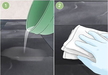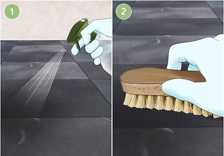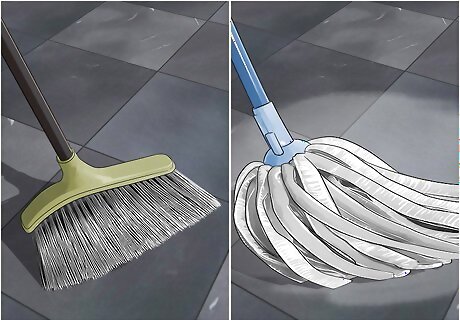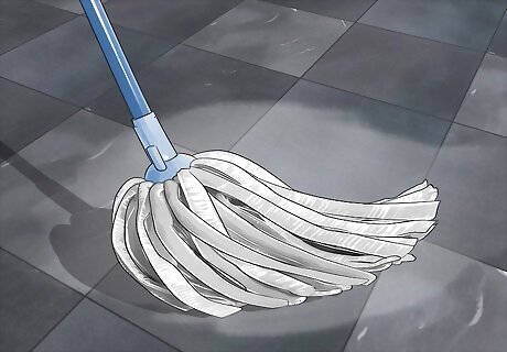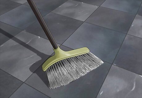 Sweep and mop the slate. Start with removing dry dust and debris by sweeping. Then mop or wipe the slate surface with a soft cloth or microfiber mop in soapy water. Allow the surface to dry.