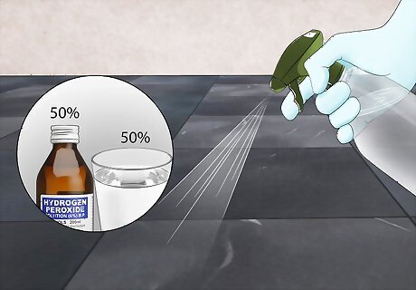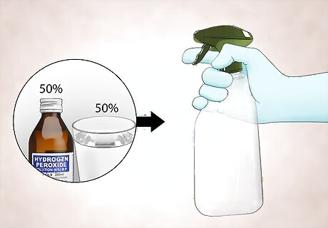 Mix a solution in a spray bottle that is 50% hydrogen peroxide and 50% water. Allow the mixture to sit for around 10 minutes.