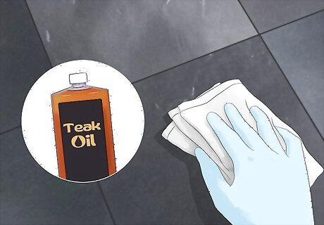 Apply teak oil to the slate. After the surface is completely dry, apply teak oil to a clean, dry cloth. Using small, circular motions, apply cloth to the slate to cover it in a thin layer of teak oil. Designated slate oil is also available to buy at some hardware stores. However, it tends to be more expensive. Teak oil will achieve the same results.