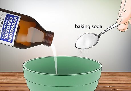 Mix a solution of hydrogen peroxide and baking soda. Add a few spoonfuls of baking soda to the peroxide until the mixture becomes bubbly. Wait until the bubbles stop.