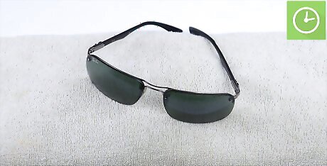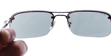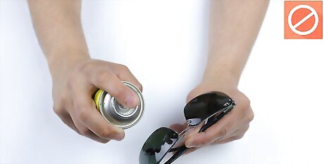 Spray both sides of each lens with the eyeglass cleaner. It’s best to use a spray that came with the glasses when you purchased them. Sprays that are specific to your sunglasses will protect any extra coatings the lenses have on them. Try to spray from a distance that evenly coats the lenses, so when you wipe there isn’t any buildup of solution to accumulate to form smudges.