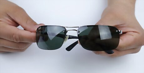 Use the solution on other parts of the glasses. Since pre-made lens cleaners are specified towards lenses only, the benefit of a diluted rubbing alcohol solution is that it can be safely applied to pieces such as earpieces and nosepieces. Give the entire frame a wipe down to get them back to their original, clean state.