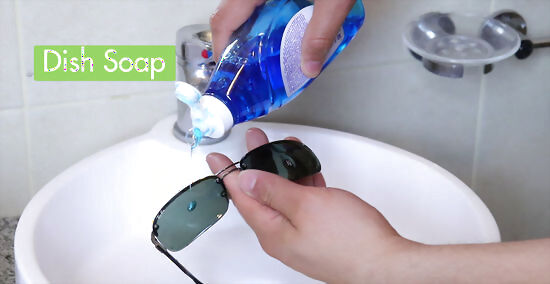 Put a small drop of dish soap on each side of the lenses. Take your forefinger and thumb, and gently smear the soap in a circular motion. Rub so that the soap evenly coats each lens.