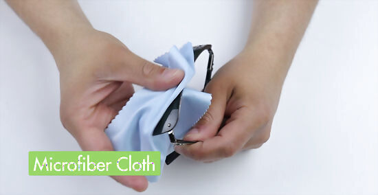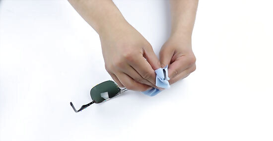 Look to see just how dirty the lenses are. Also inspect if any other pieces of the glasses need cleaning. Pieces to look out for are the nose and earpieces. These come into contact with hair and natural oils on your skin, which can quickly accumulate to make them dirty quicker. If they do need a quick clean, then wipe them with the microfiber cloth.
